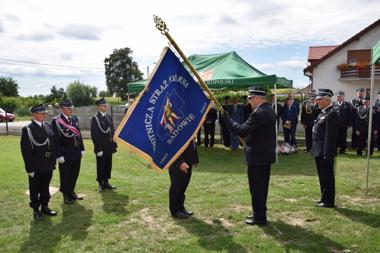 Ważnym elementem uroczystości było pożegnanie starego i wręczenie nowe sztandaru Jednostki. Fundatorzy sztandaru wbili symbolicznie pamiątkowe gwoździe. Po poświęceniu został one przekazany strażakom i odznaczony przez Eugeniusza Grzeszczaka Prezesa Zarządu Oddziału Wojewódzkiego Związku OSP RP. Zasłużeni strażacy odebrali także przyznane medale.
