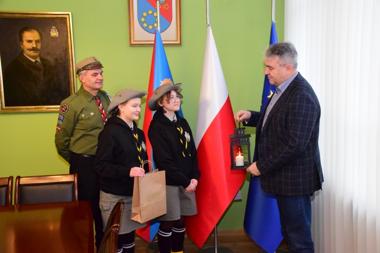 Betlejemskie Światło Pokoju dotarło do Powiatu Ostrowskiego. Symboliczne światełko trafiło do Starostwa Powiatowego w Ostrowie za sprawą harcerek oraz druha Dariusza Potasznika. Odebrał je Wicestarosta Ostrowski Roman Pacholczyk.