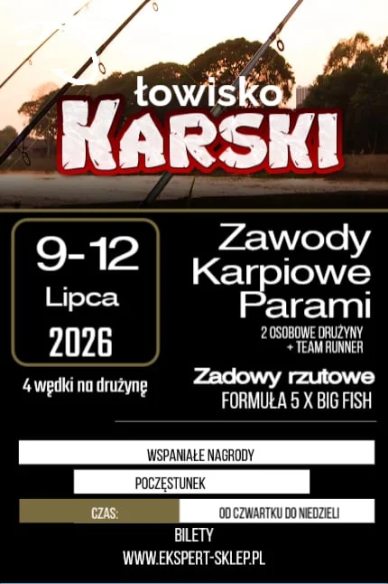 Nad wodą zapowiada się konkretna rywalizacja ZAWODY KARPIOWE KARSKI 5 x BIG FISH to propozycja dla ekip, które lubią karpiowe łowy, sportową atmosferę i walkę o naprawdę duże ryby. Start jest w lipcu, a liczba miejsc jest mocno ograniczona, więc to jedna z tych imprez, o których szybko robi się głośno w środowisku wędkarskim. Jeśli kręcą Cię zawody z klimatem i stawką na wielkie ryby, warto mieć ten termin na oku.